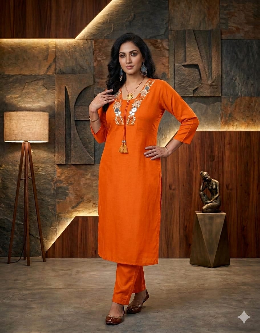 Hand-Embroidered Ethnic Kurta Set