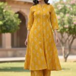 Color & Print: Adorned in a stunning Laddu Yellow hue with delicate, all-over white floral motifs for a fresh, traditional look.