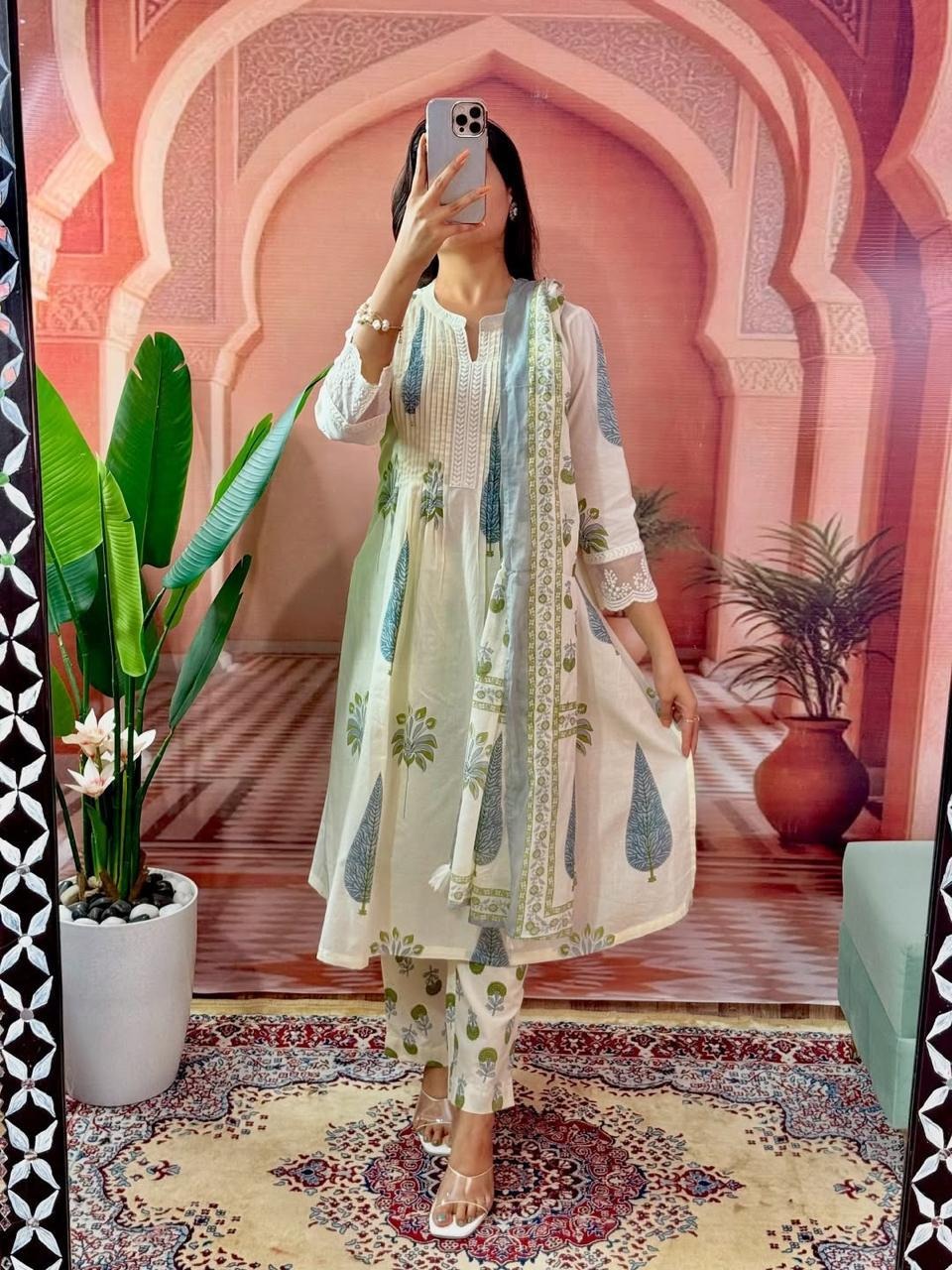 Dupatta: Includes a lightweight, full-length cotton dupatta with matching borders and decorative tassel accents.