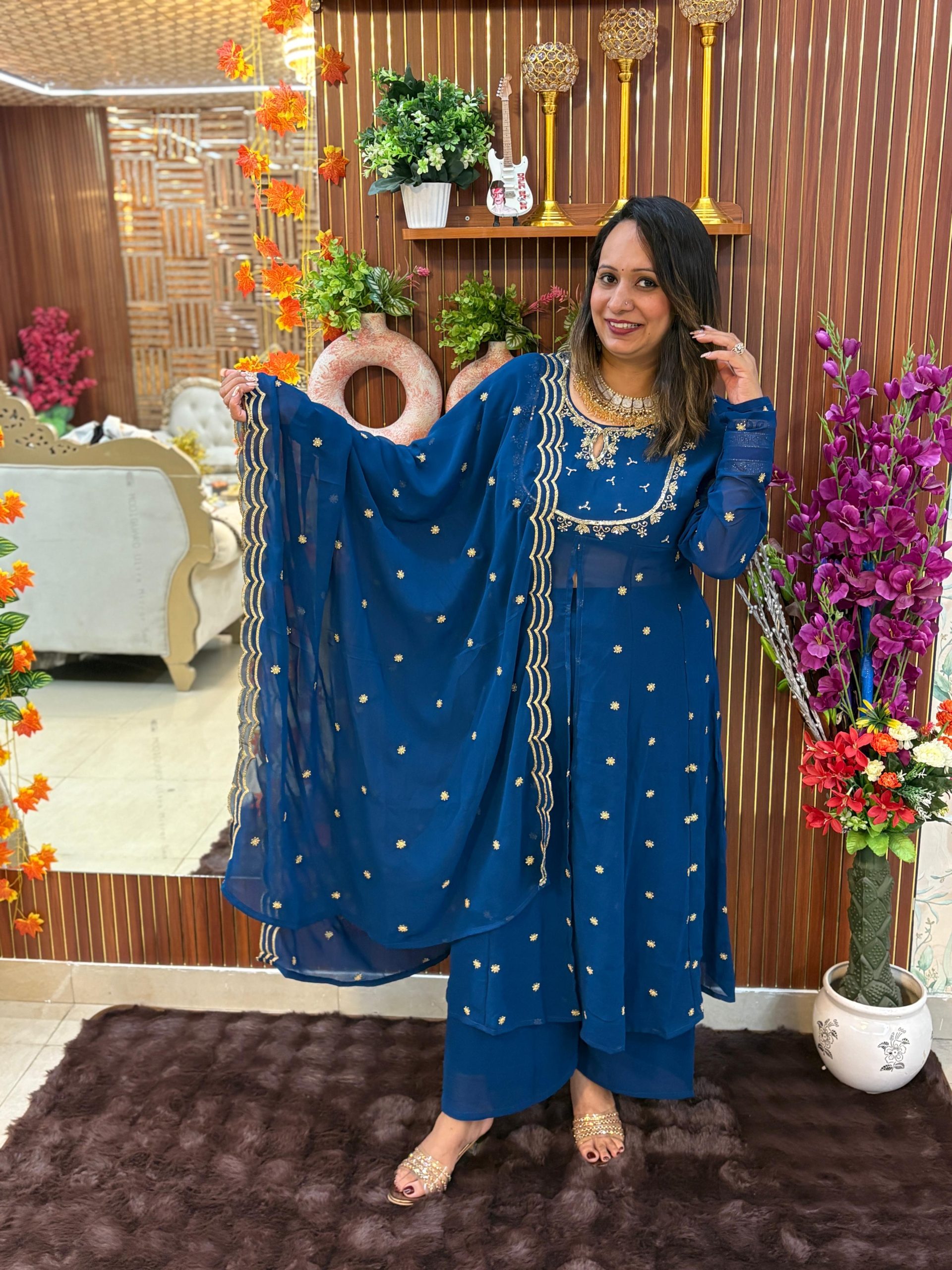 Ethnic Motifs Embroidered Beads and Stones Straight Kurta & Palazzos With Dupatta (sabbesachi)