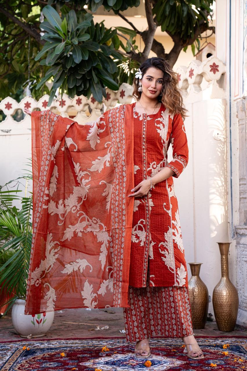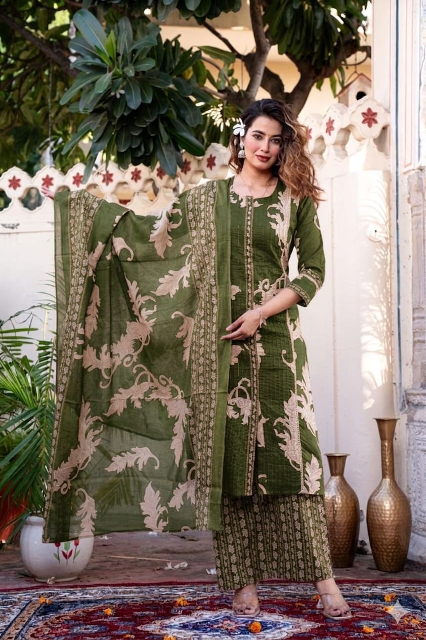 Dupatta: Lightweight matching fabric with a heavy floral border and overall print, ideal for versatile styling.
