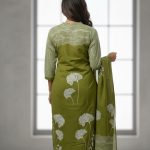 Design: Distinctive white ginkgo leaf motifs on the kurta and dupatta, complemented by a textured yoke and striped sleeves.