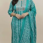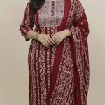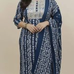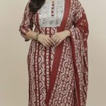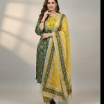 Contrasting Borders: The dupatta is framed with wide, multi-tonal borders that mirror the kurta’s print, adding visual weight and elegance.