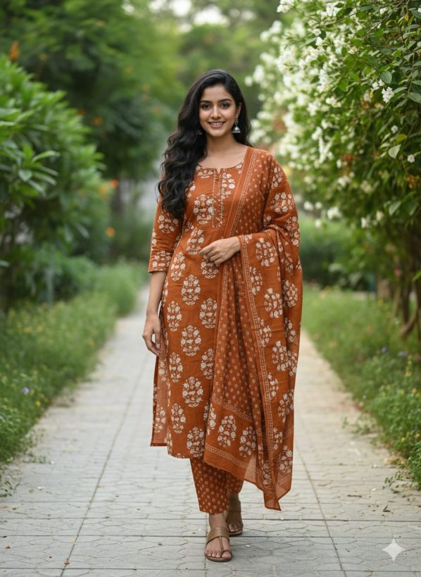 Bottoms: Matching printed Cotton pants/trousers that complete the coordinated look.