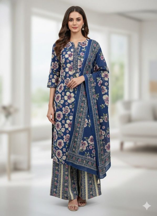Floral Printed Kurta Set with Palazzo & Dupatta