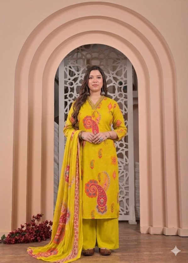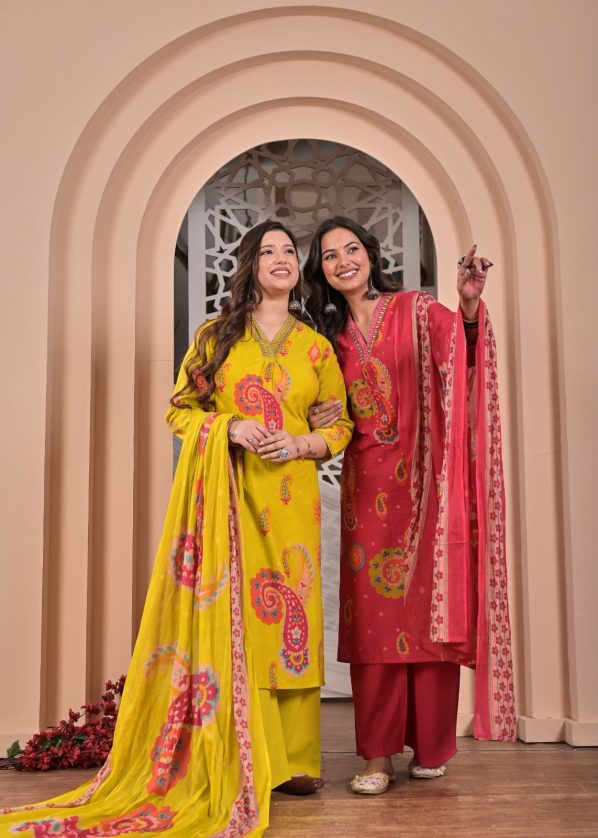 Dupatta: Lightweight, full-length matching dupatta with coordinated prints and border detailing.