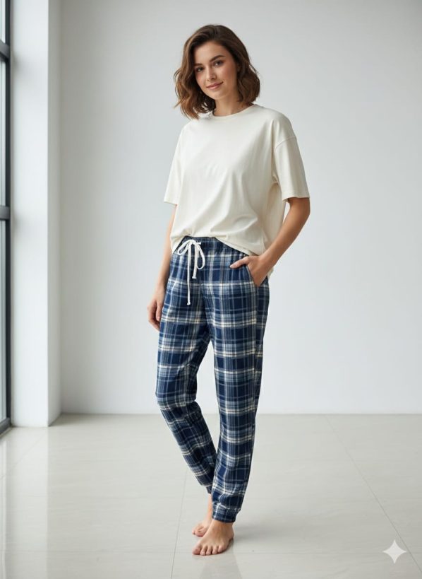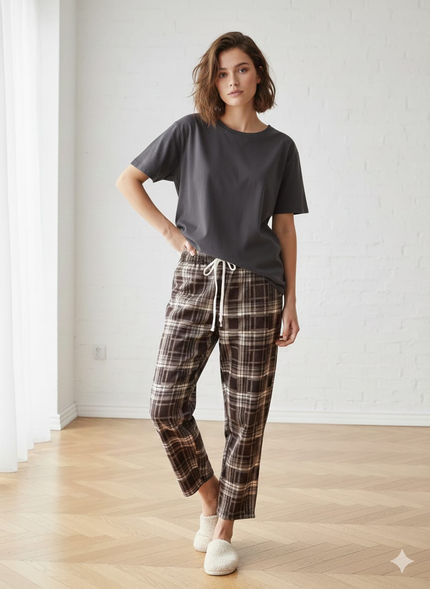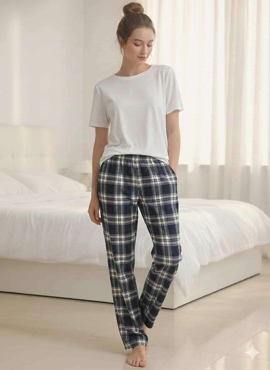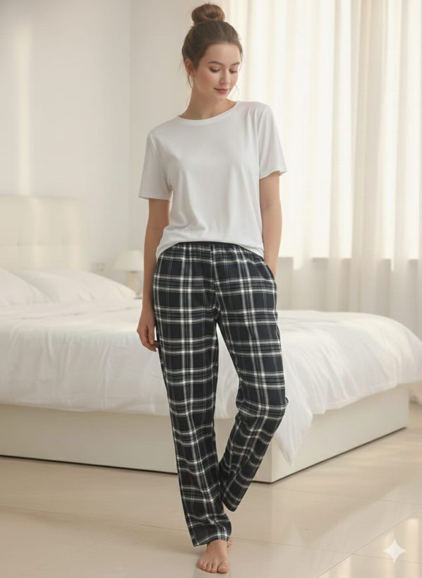 These stylish and comfortable plaid lounge pants are crafted from soft, breathable flannel material, offering a relaxed, straight-leg fit for ultimate comfort. The classic check pattern is accentuated by a practical elastic waistband with a functional drawstring for a customizable fit, making them the perfect versatile sleepwear addition for cozy nights in.