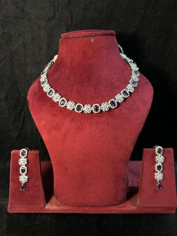 Be the first to review “Rhodium plated American diamond adjustable necklace”